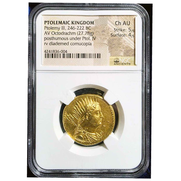 オークションにて時々出品されますが、あまりグレードが高くないと思われ、Ch AU以上のプトレマイオス3世のコインは、海外でも非常に価値が高く上昇傾向にあります。
