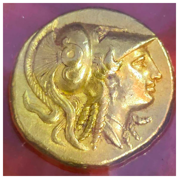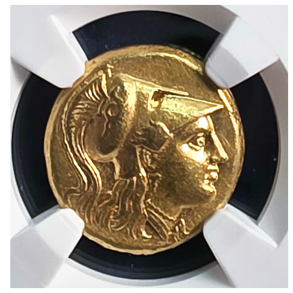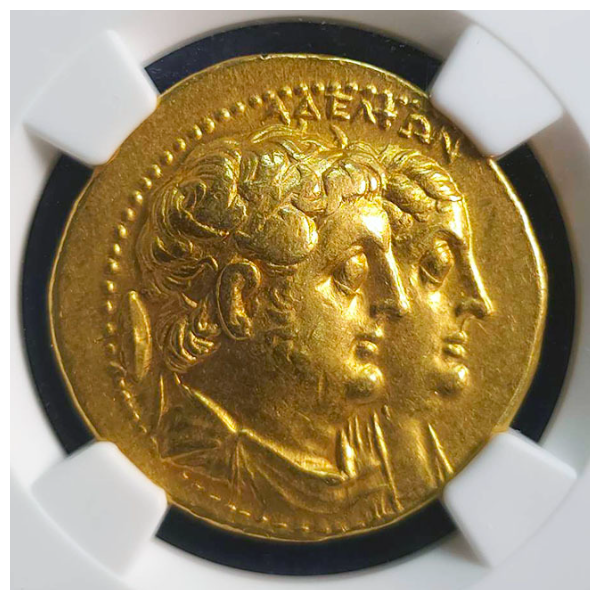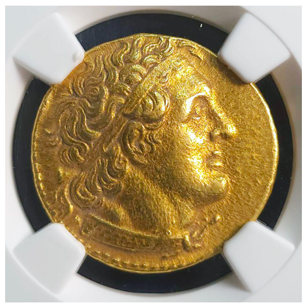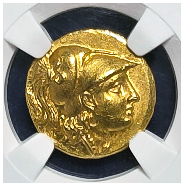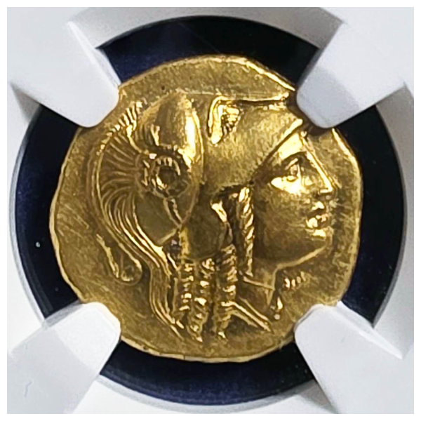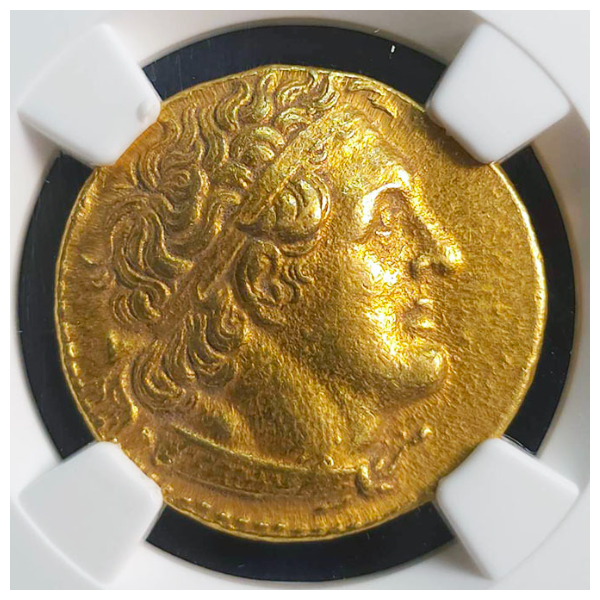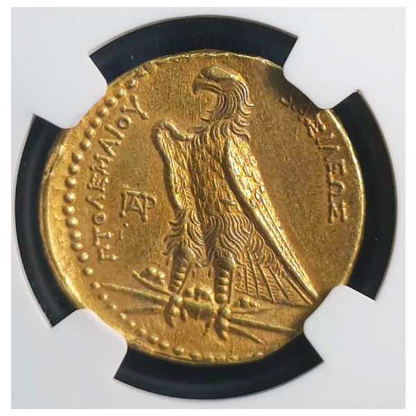 グレードもAUで高く、表のプトレマイオス1世の肖像もはっきり刻印され、裏面の鷲も羽根、及び羽毛もしっかり見られる良品です。