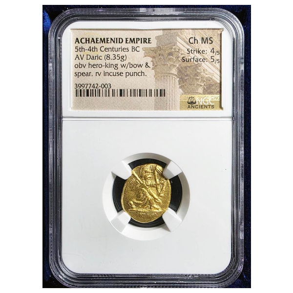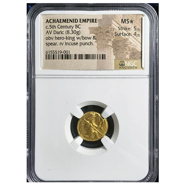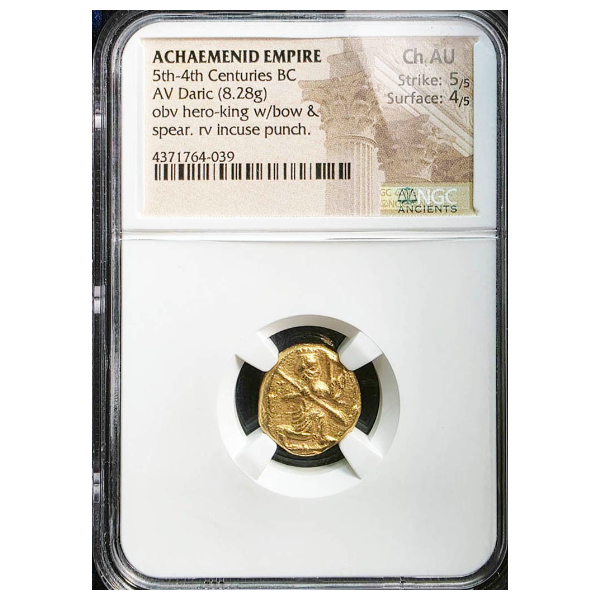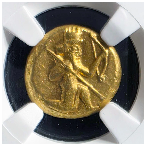 こちらのコインのグレードはCh MS 4/5 5/5と非常にハイグレードです。現在探してもこれほどのグレードはなかなか出てきません。海外のオークションで非常に少ない頻度で出ていますが、いくら程度が良くても、そもそもの型(ダイ)が不明瞭で見かけがあまり良くないものもあります。その点、このコインはダリウス1世の肖像の輪郭がはっきりしています。