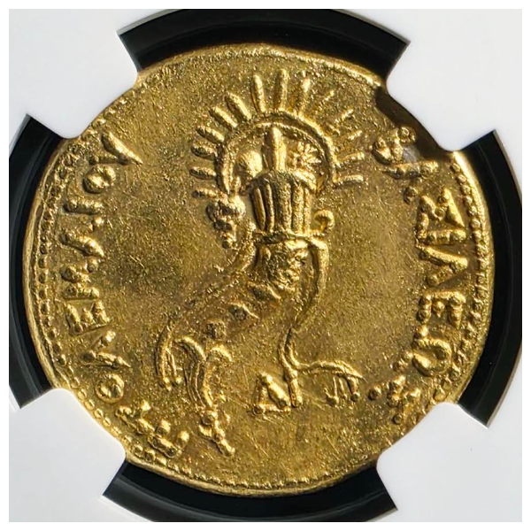 肖像がセンターに位置し、刻印もしっかりしています。表情も凛々しく、髪も巻き髪で特徴的、目の瞳まではっきりわかります。グレードもMSで、発行期も生存中もしくは死後直後で申し分のないコインです。